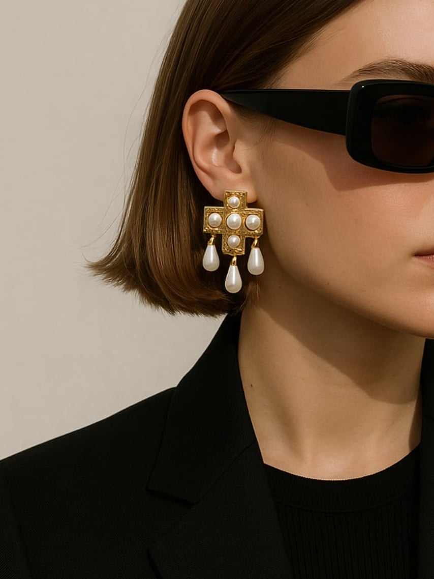 Cross Pearl Earrings